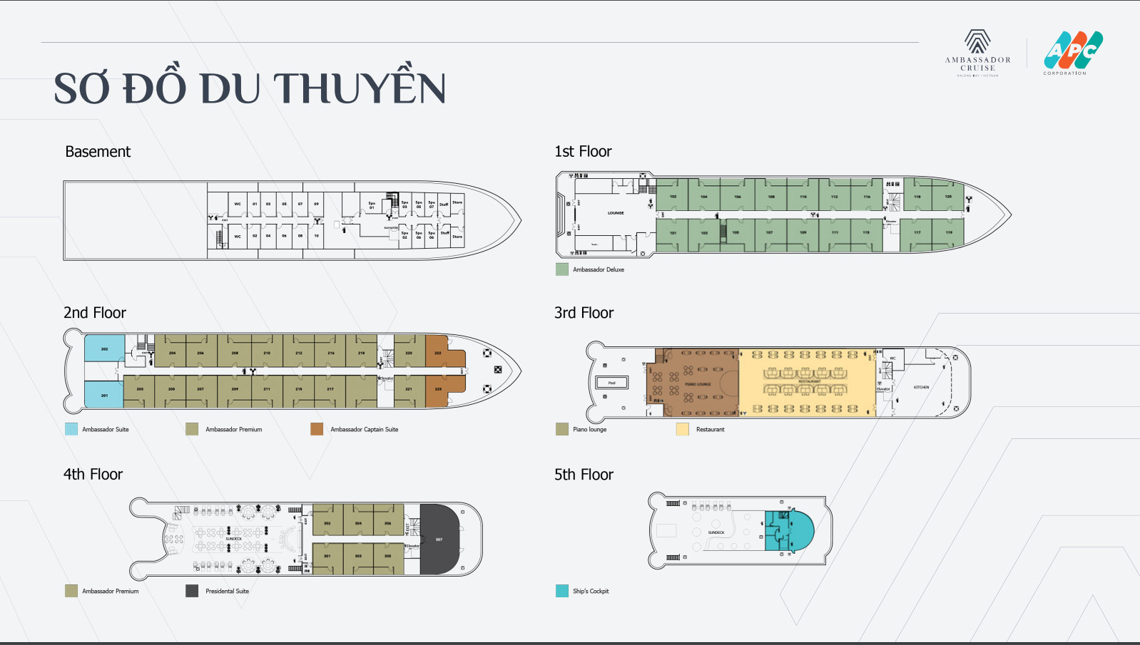 Ambassador Cruise là du thuyền ngủ đêm sang trọng bậc nhất chính thức hoạt động từ 2018 và đang khai thác hải trình thăm vịnh Hạ Long. Đồng thời đây cũng là du thuyền lớn nhất sở hữu 46 cabin được trang bị đầy đủ tiện nghi, sundeck 360 độ, bể sục jacuzzi, cầu kính trong suốt cùng nhiều tiện nghi đẳng cấp 5 sao. Lựa chọn du thuyền Ambassador, du khách sẽ được tận hưởng kỳ nghỉ thư giãn trọn vẹn với lòng hiếu khách của đội ngũ tàu viên, thưởng thức ẩm thực thượng hạng và tham gia các hoạt động thú vị. Ngoài ra, Ambassador cũng đang khai thác hải trình thăm vịnh một ngày và ăn tối ngắm hoàng hôn dành cho du khách không có nhiều thời gian nhưng vẫn muốn khám phá điểm đến xinh đẹp của vịnh Hạ Long.