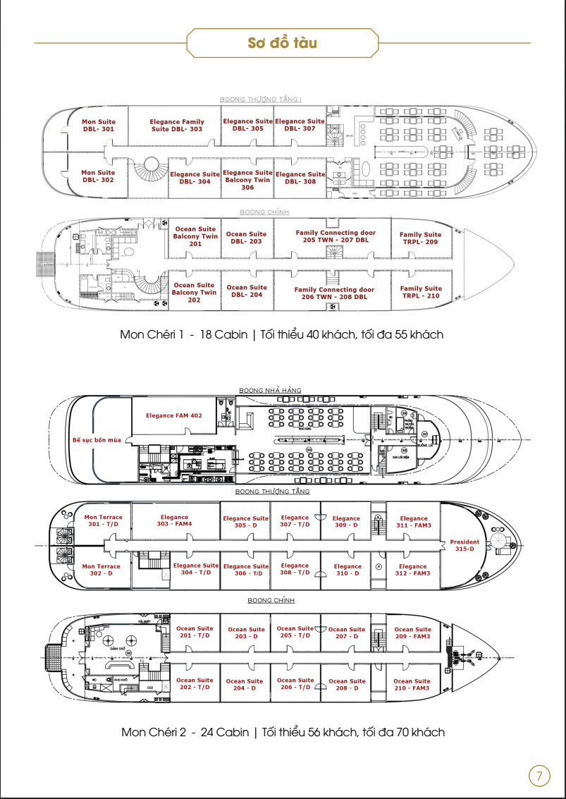 - Một trong những du thuyền có diện tích phòng rộng nhất từ 35m2 đến 70m2 cùng đầy đủ tiện nghi