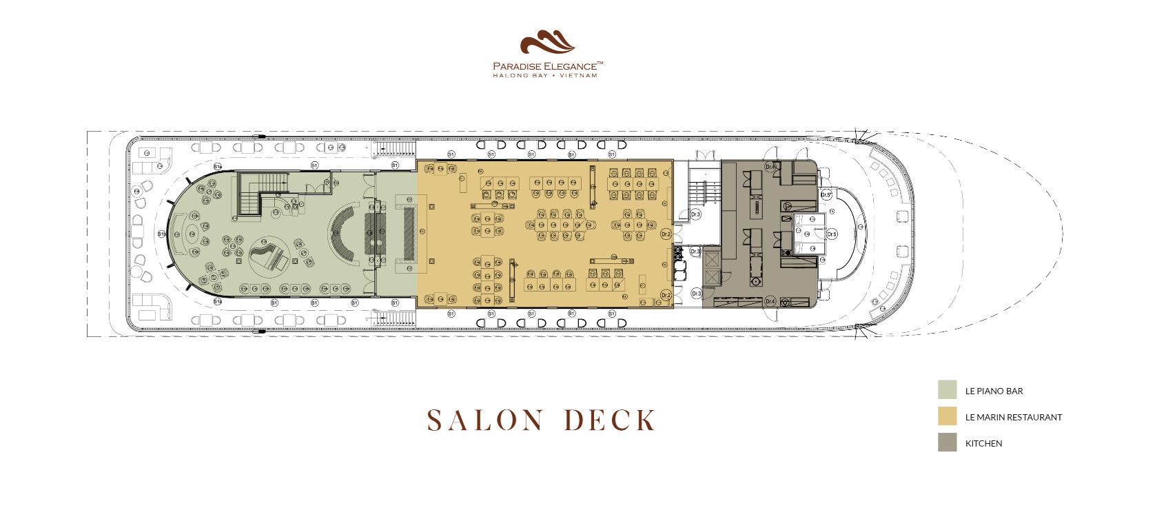 Paradise Elegance thuộc phân khúc tàu 5 sao Hạ Long cao cấp với 31 cabin, mang đến cho du khách trải nghiệm du lịch đẳng cấp trên biển. Với hành trình khám phá Vịnh Hạ Long xinh đẹp cùng đảo Ti Tốp hoang sơ, các hang động kỳ vĩ… đảm bảo đem lại kỳ nghỉ dưỡng thư giãn tuyệt đối, hài lòng với mọi du khách.