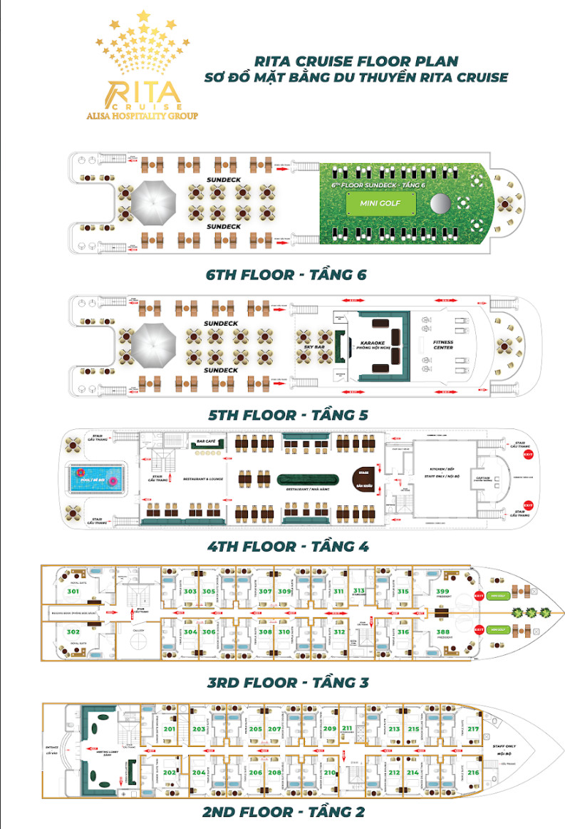 Du thuyền Rita 5* được đưa vào hoạt động từ năm 2022, nổi bật với thiết sang trọng, trang nhã của gam màu trắng chủ đạo. Sở hữu hệ thống 31 cabin hạng sang, trang bị đầy đủ tiện nghi cao cấp, không gian ấm cúng kết hợp với nội thất khang trang, lựa chọn nghỉ dưỡng tại đây, du khách sẽ được chiêm ngưỡng thắng cảnh tuyệt đẹp của "đảo ngọc thiên đường", tham gia các hoạt động trải nghiệm thú vị diễn ra 2 ngày 1 đêm như: chèo thuyền kayak, thỏa thích bơi lội tại Hòn Ba Trái Đào hay thử sức với lớp học nấu ăn, tập Tai Chi, câu mực vào buổi tối...